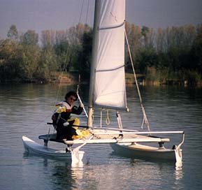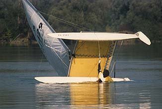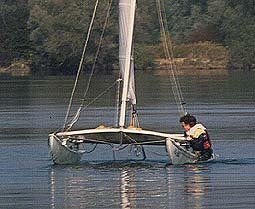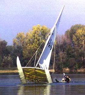 | Nun ist es soweit! Der Mast hebt sich aus dem Wasser, der Luvrumpf schwingt herüber und setzt mit einem donnernden Krachen auf dem Wasser auf. Jetzt gilt nur noch eines: "Festhalten!" |